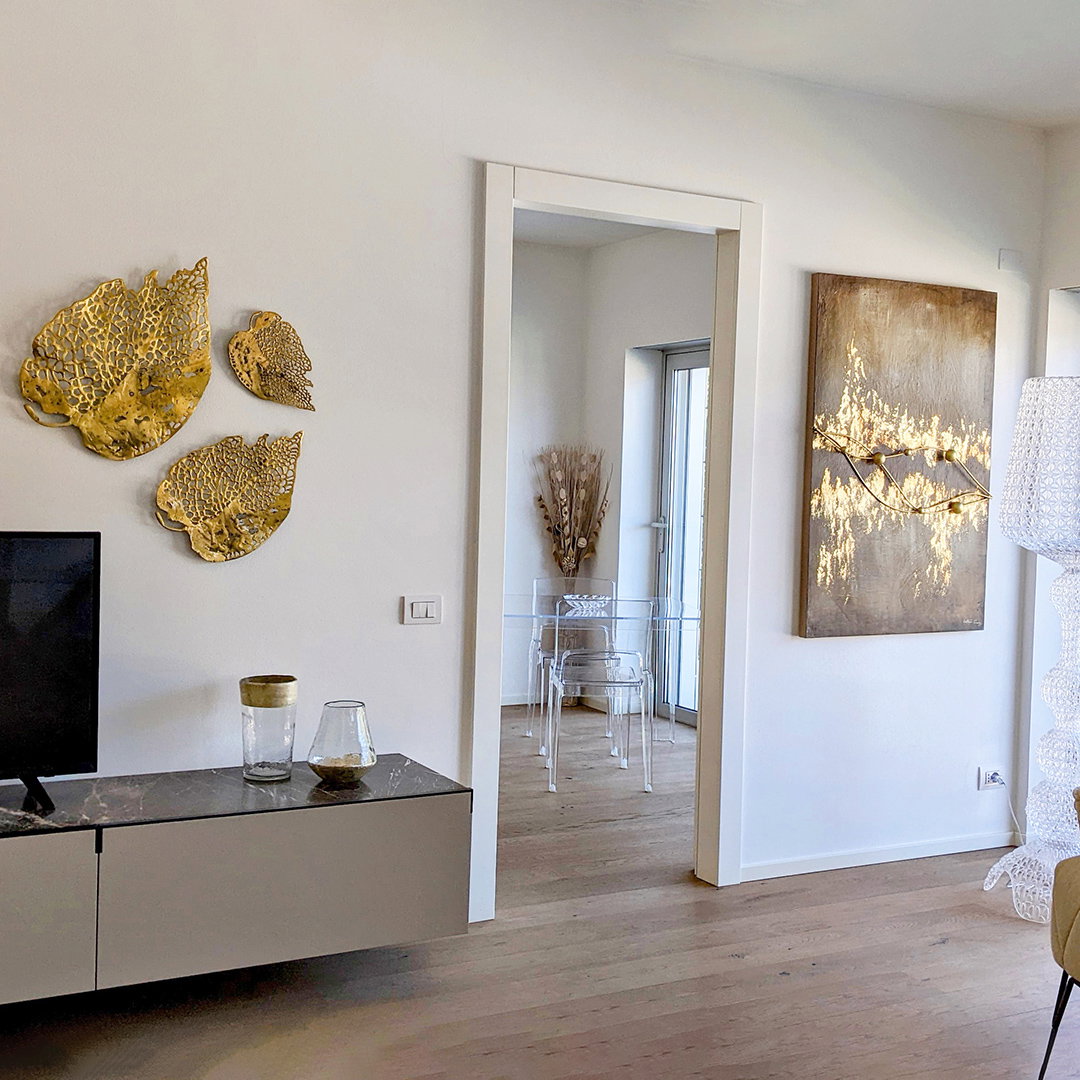 A escultura de parede do artista Nopparat Khumpai mostra folhas finas em ouro e faz lembrar o 'Golden Moments of Fall'. As folhas de grande formato são extraordinariamente delicadas e são compostas por centenas de ramos com um padrão perfurado. Assim, as folhas feitas à mão têm uma suave sensação de leveza. Na sua cozinha, a escultura em metal traz a sensação do Outono para a sua casa.