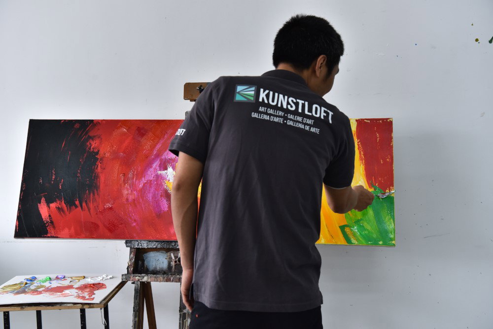 Ihr KunstLoft® Gemälde erhalten Sie in der Größe 150x50cm. Wir verwenden kraftvolle Acrylfarben und Leinwände in Profiqualität. Sie sind geruchslos und gesundheitlich absolut unbedenklich. Anders als bei minderwertigen Drucken auf Leinwand können Sie auf unseren Unikaten jeden Pinselstrich fühlen. Ihr Acrylbild können Sie sofort aufhängen, da ein praktisches Aufhängesystem angebracht ist. Die Gemälde sind auf 3,5cm breiten Keilrahmen aus massivem schwedischen Tannenholz gespannt - auf billige, sich verbiegende MDF-Rahmen verzichten wir. Zur leichten Ausrichtung liefern wir eine kleine Wasserwaage mit.
